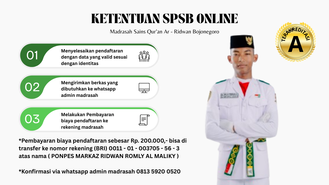 Proses pendaftaran SPSB Online MA SAINS QUR'AN AR - RIDWAN hampir selesai. Silakan periksa kembali data-data yang sudah anda masukkan.